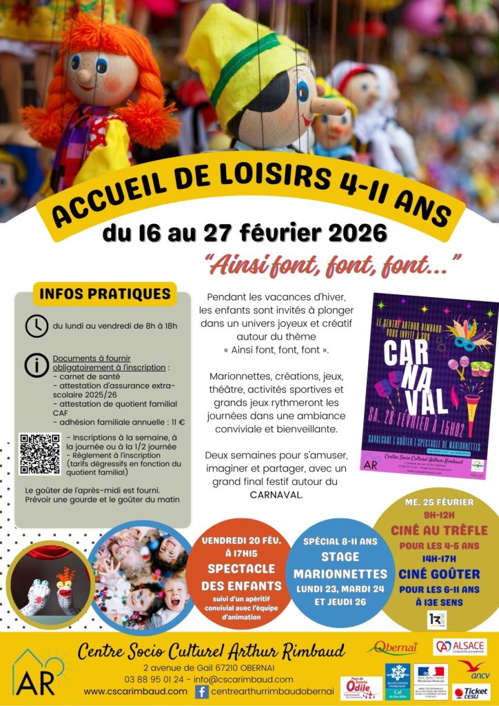 Accueil de loisirs 4-11 ans du 16 au 27 février 2026