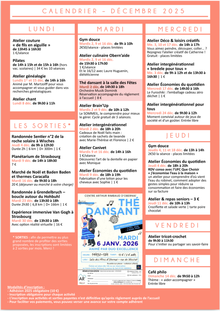 Centre Socio Culturel Arthur Rimbaud – Programme Senior – Décembre 2025