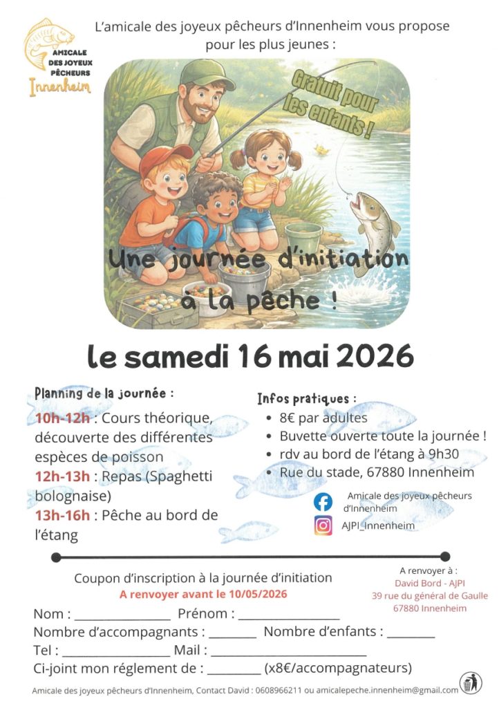 • Journée d’initiation à la pêche le samedi 16 mai
